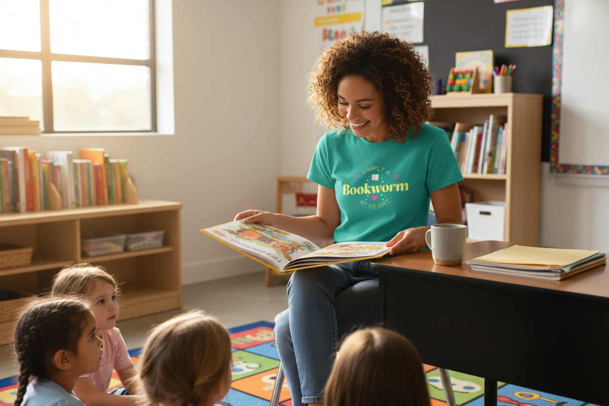 Bookworm T-Shirt — Cute Pastel Reading Tee with Book & Heart Graphic