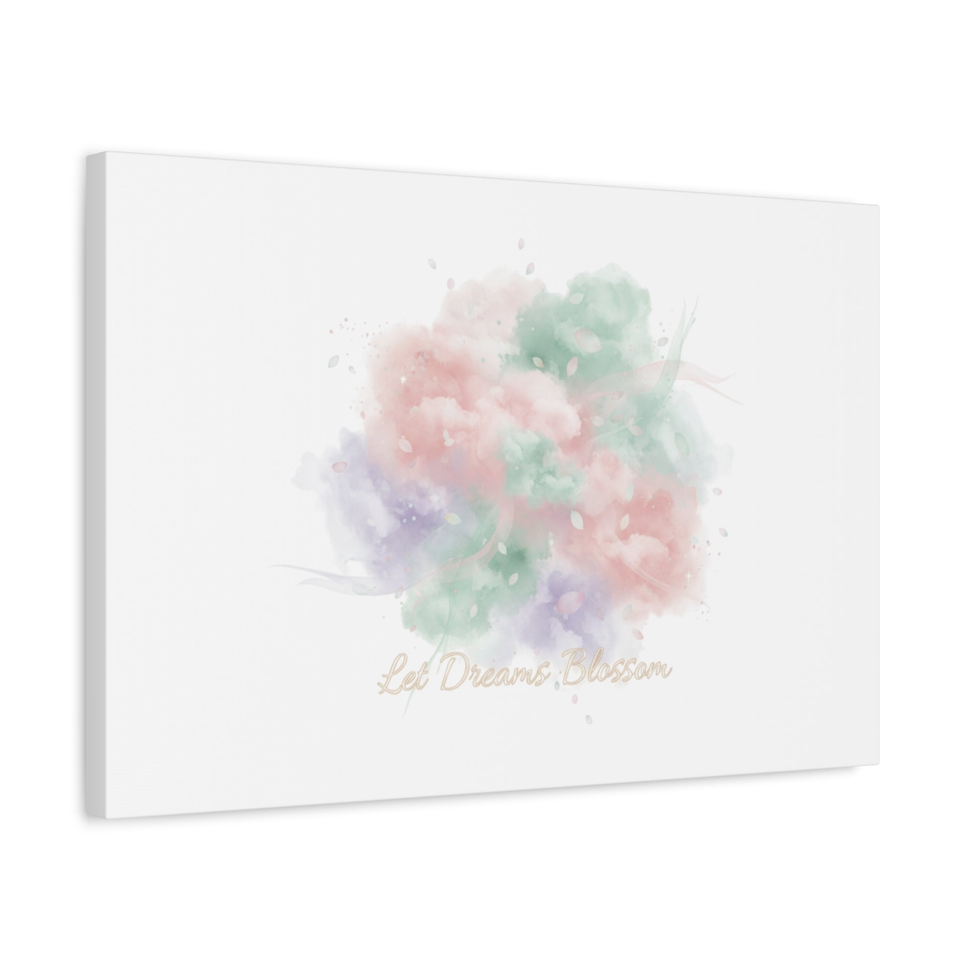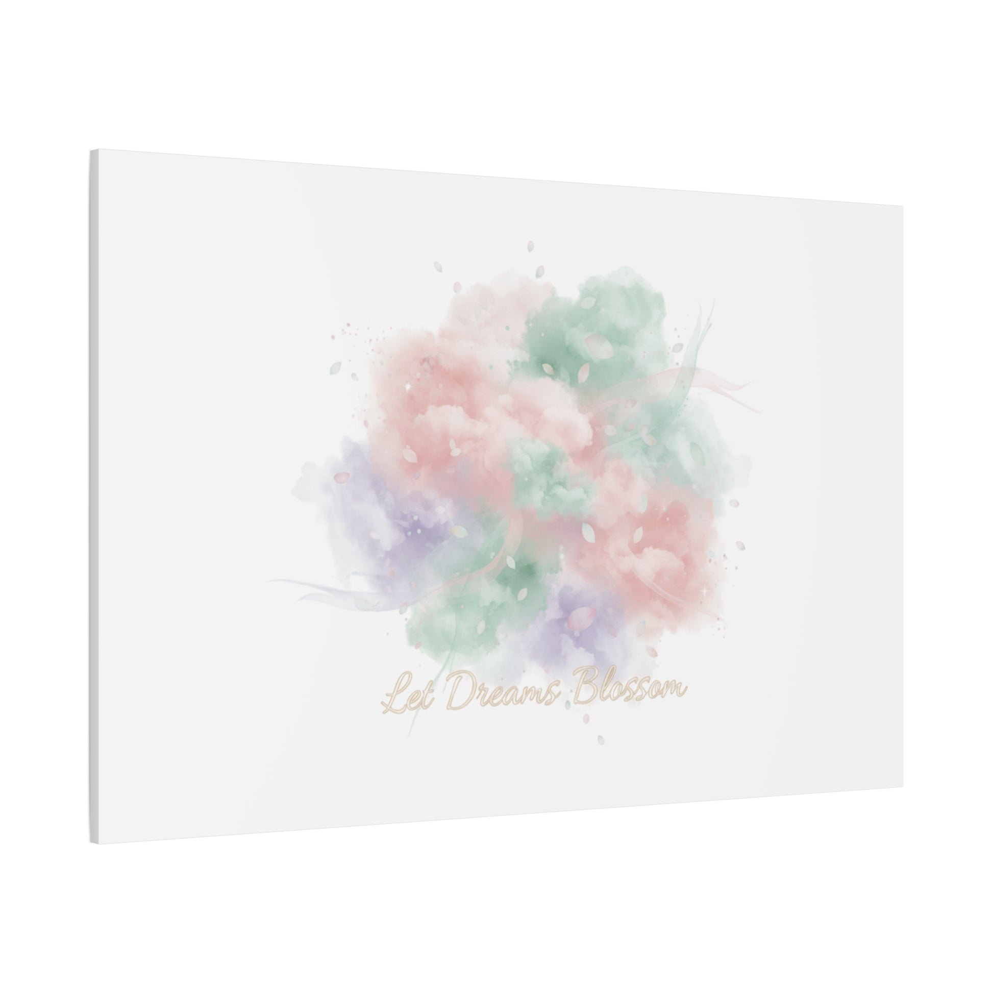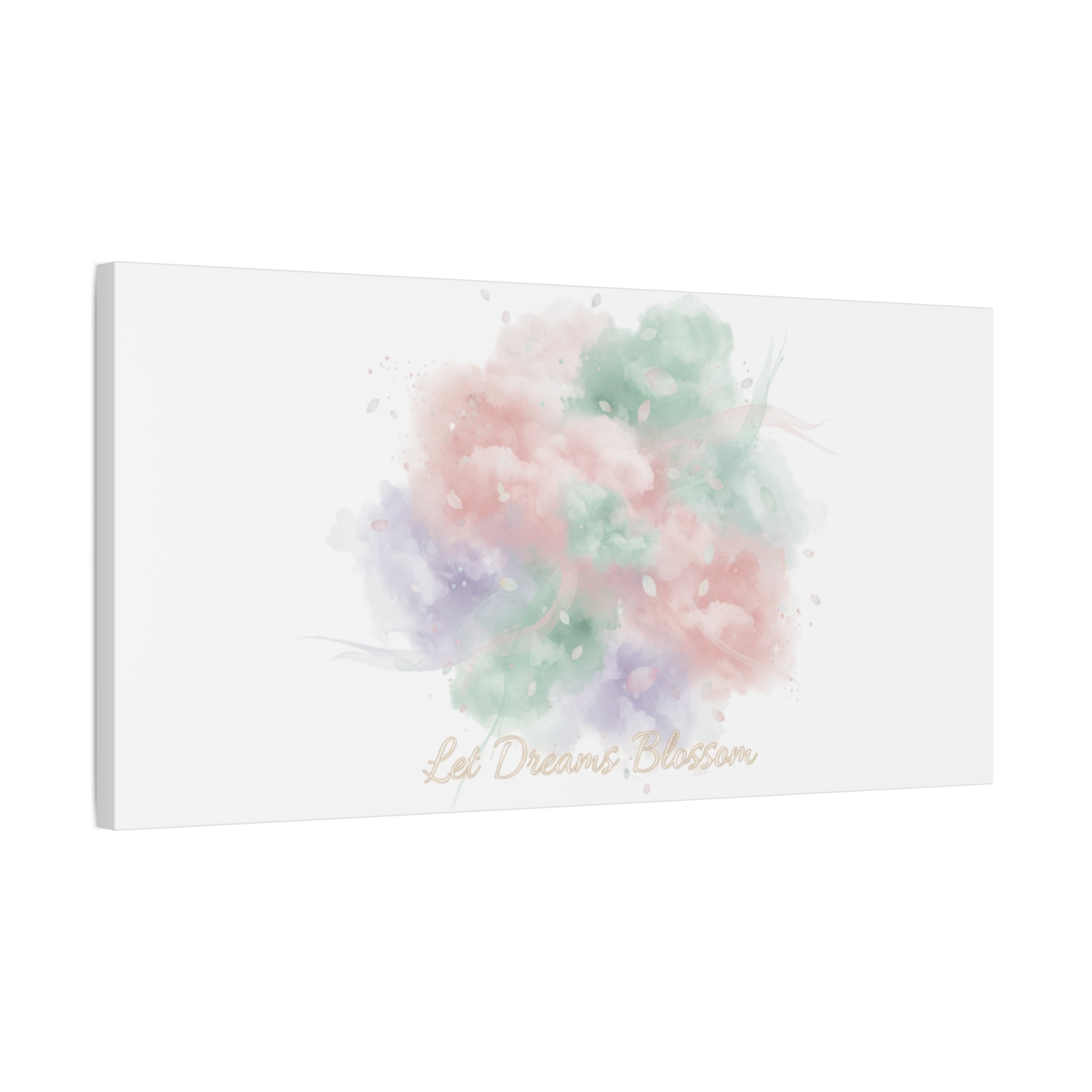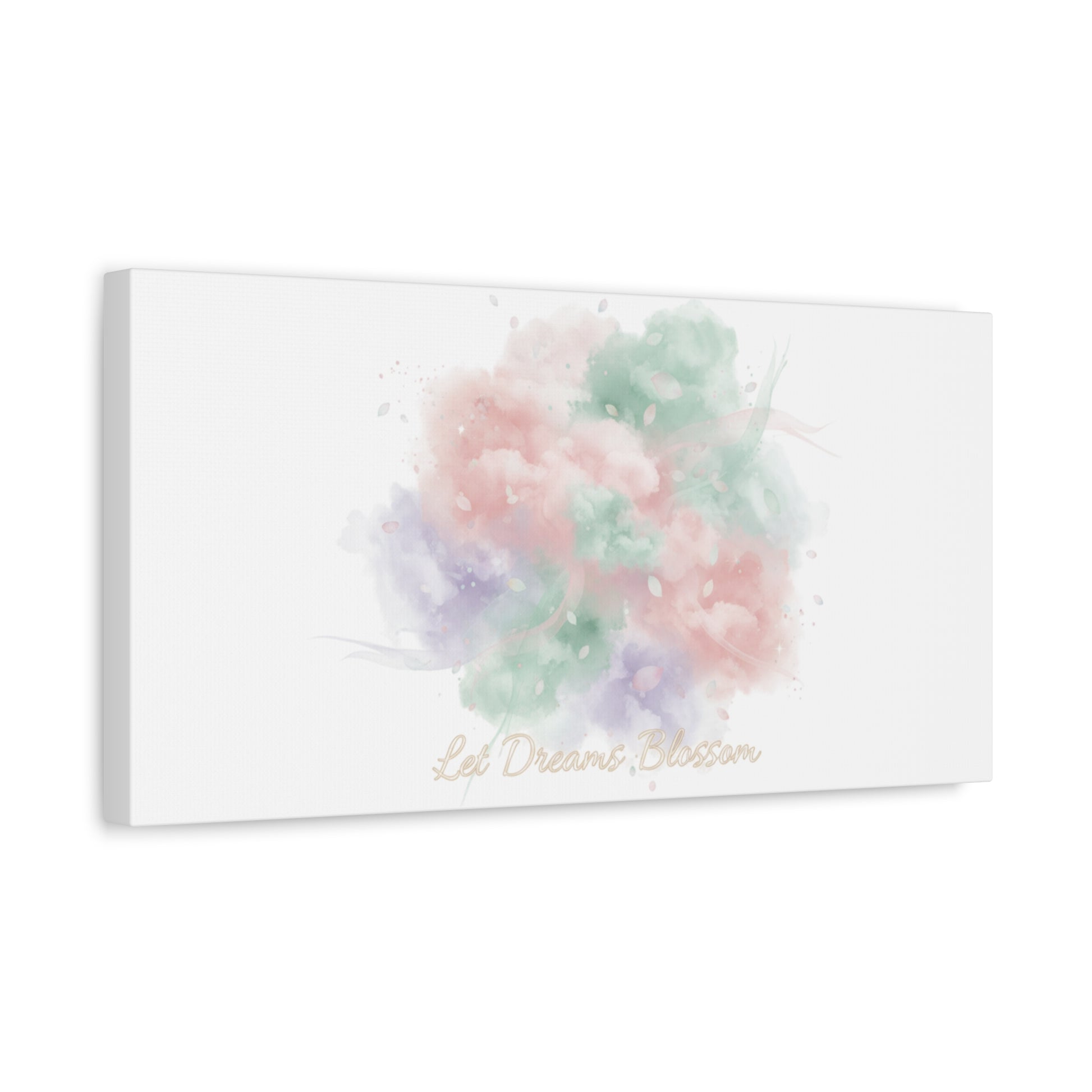 Dreamy pastel cloudscape on matte stretched canvas — airy blush, mint, and lavender washes form a soft, uplifting gradient with minimal, delicate lettering. The light, ethereal composition channels the “Dreamy Pastels in Winter” trend, bringing a springlike softness into cool-season decor for a quiet, mood-lifting accent on a neutral wall. Subtle texture from the matte canvas keeps the look calm and refined while the thin, cloudlike motifs read well in minimalist and bookish spaces.