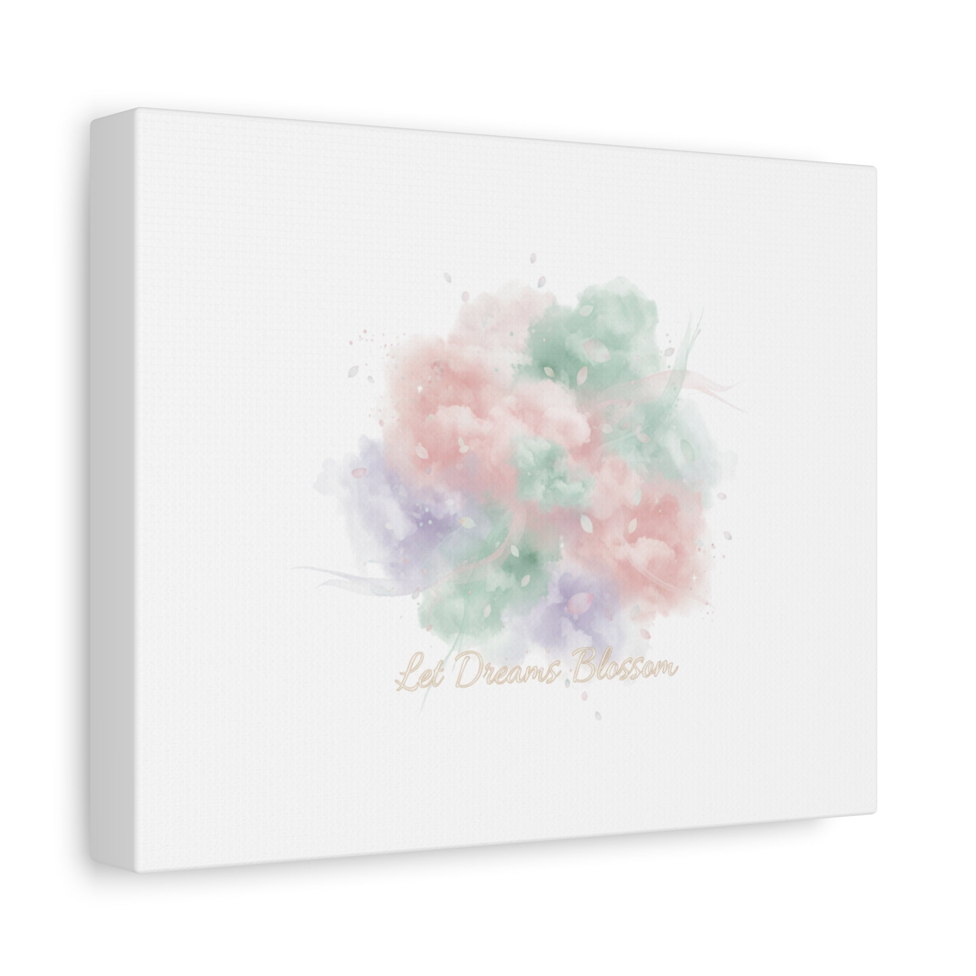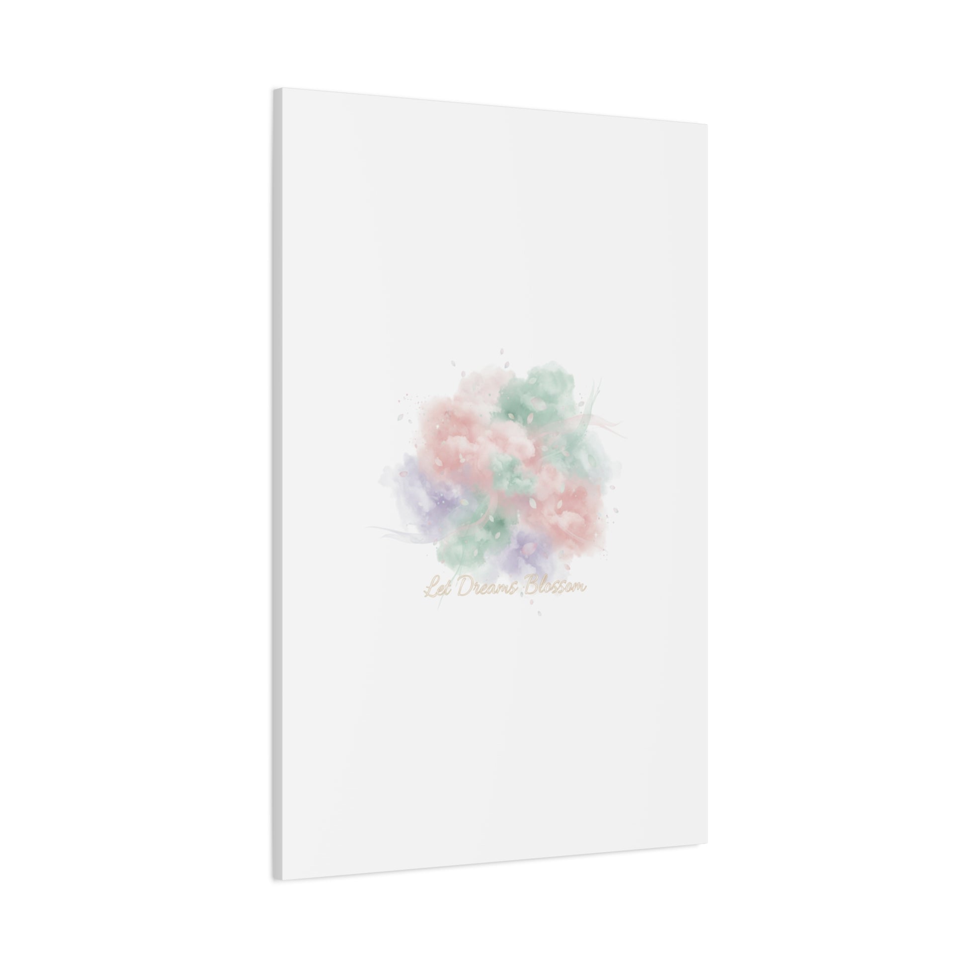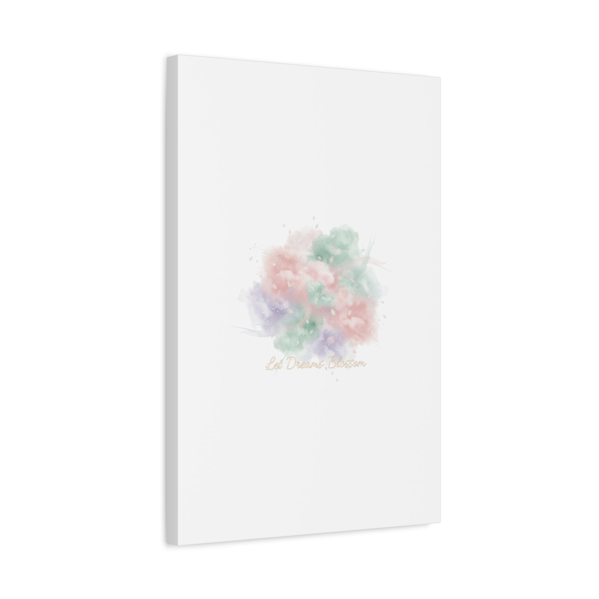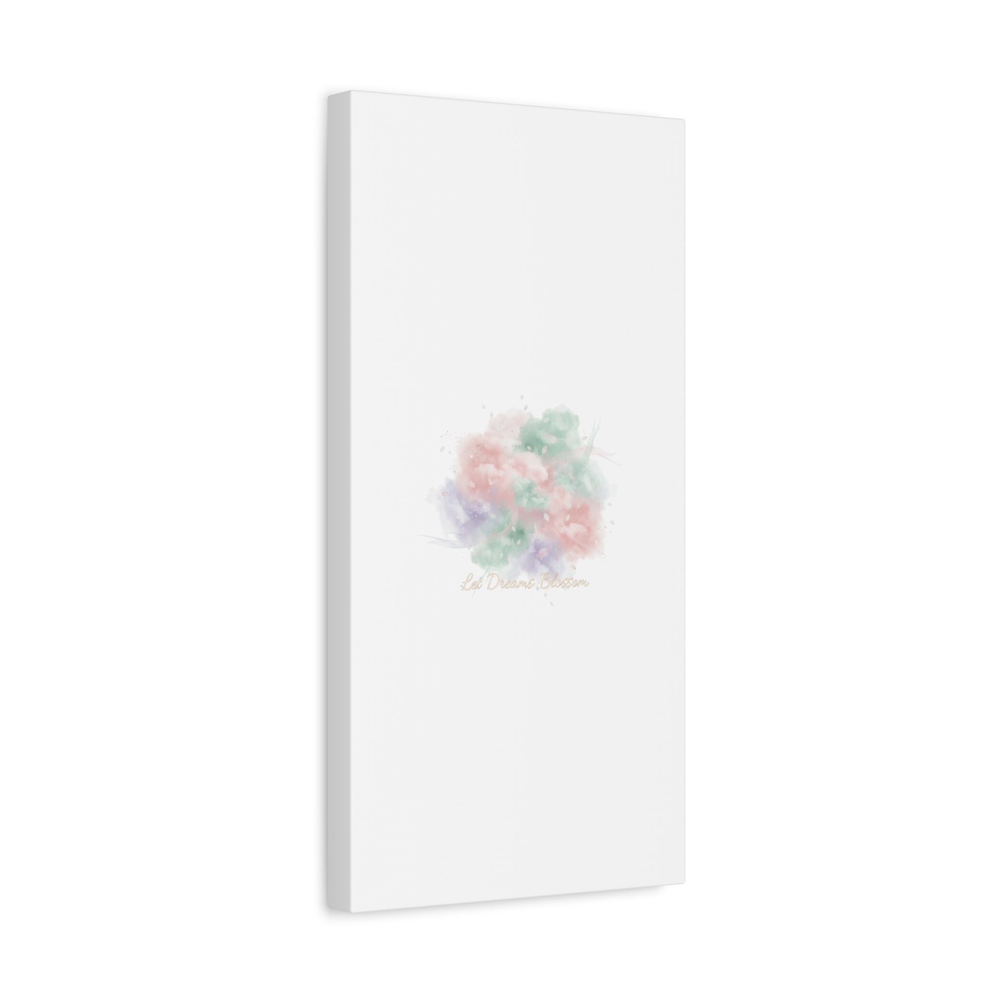 Dreamy pastel cloudscape on matte stretched canvas — airy blush, mint, and lavender washes form a soft, uplifting gradient with minimal, delicate lettering. The light, ethereal composition channels the “Dreamy Pastels in Winter” trend, bringing a springlike softness into cool-season decor for a quiet, mood-lifting accent on a neutral wall. Subtle texture from the matte canvas keeps the look calm and refined while the thin, cloudlike motifs read well in minimalist and bookish spaces.