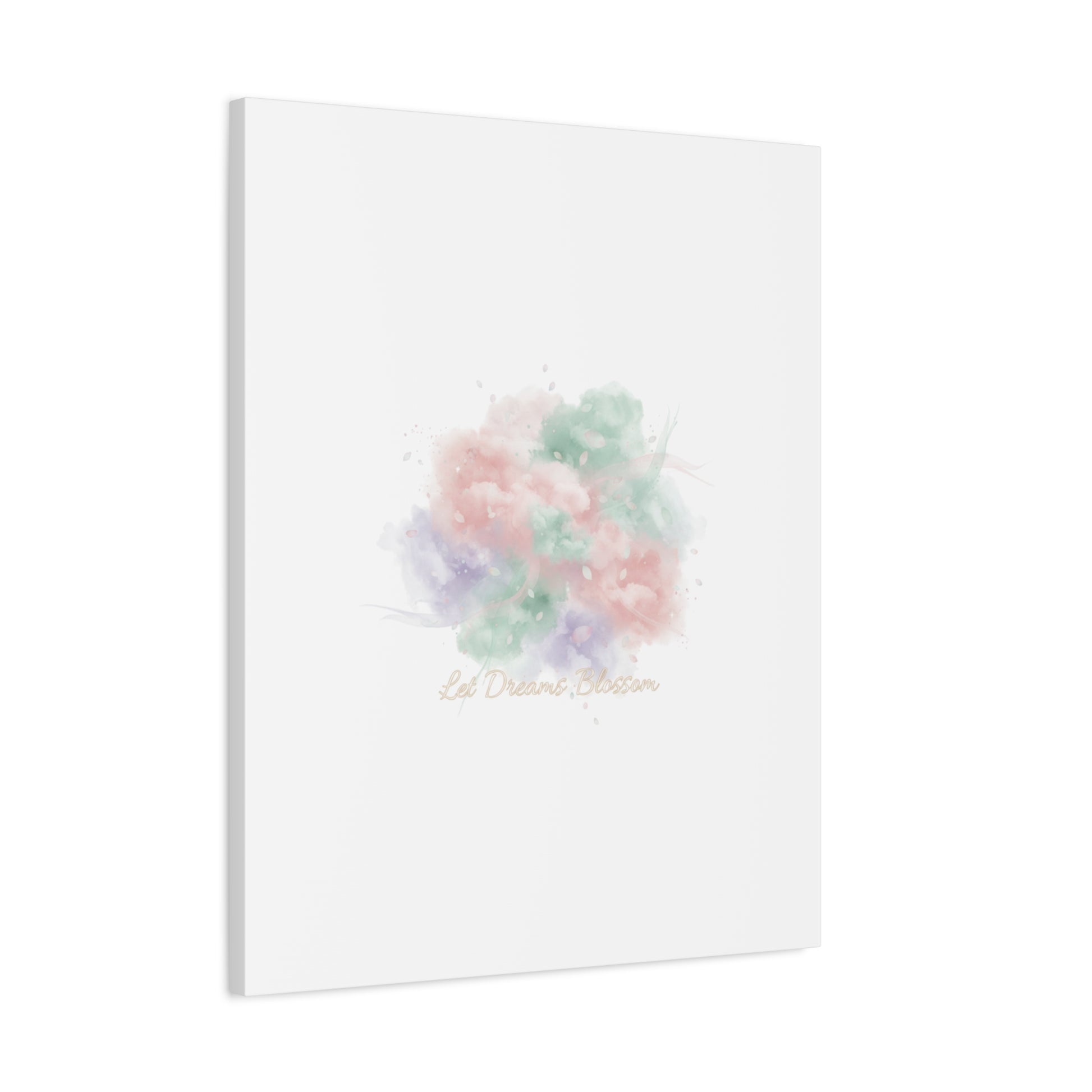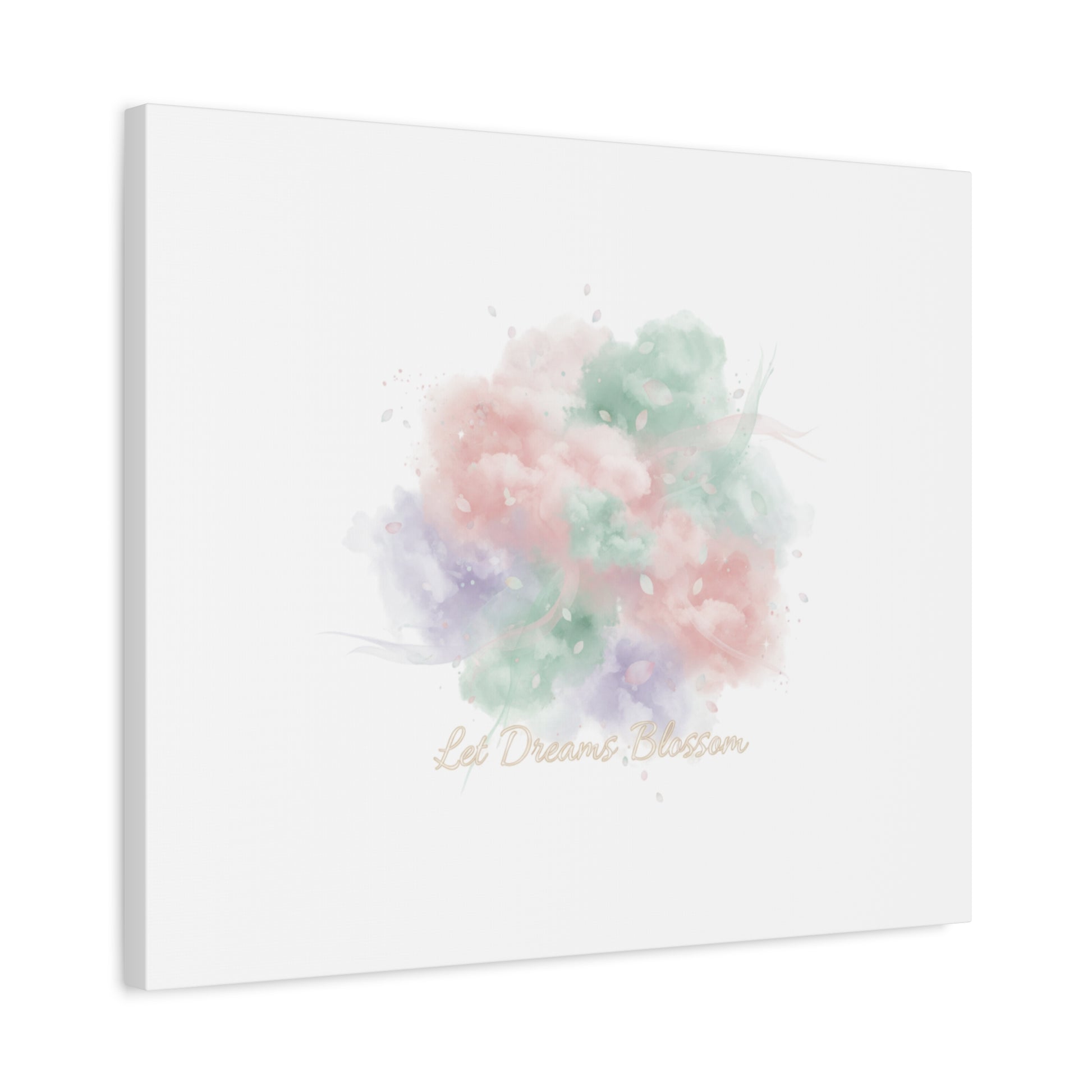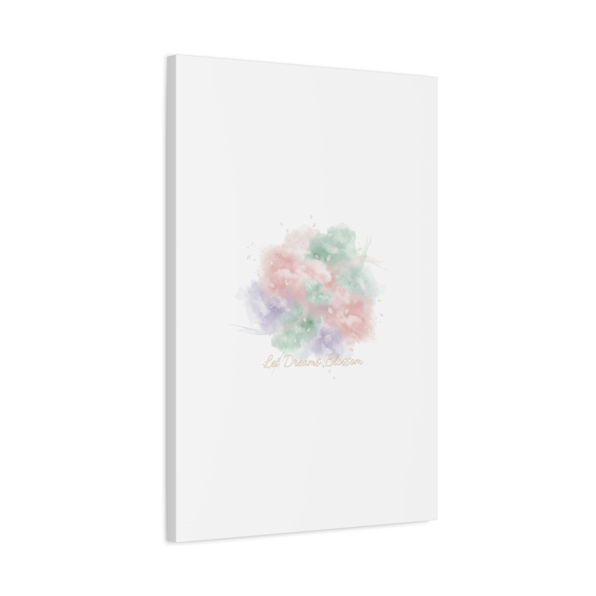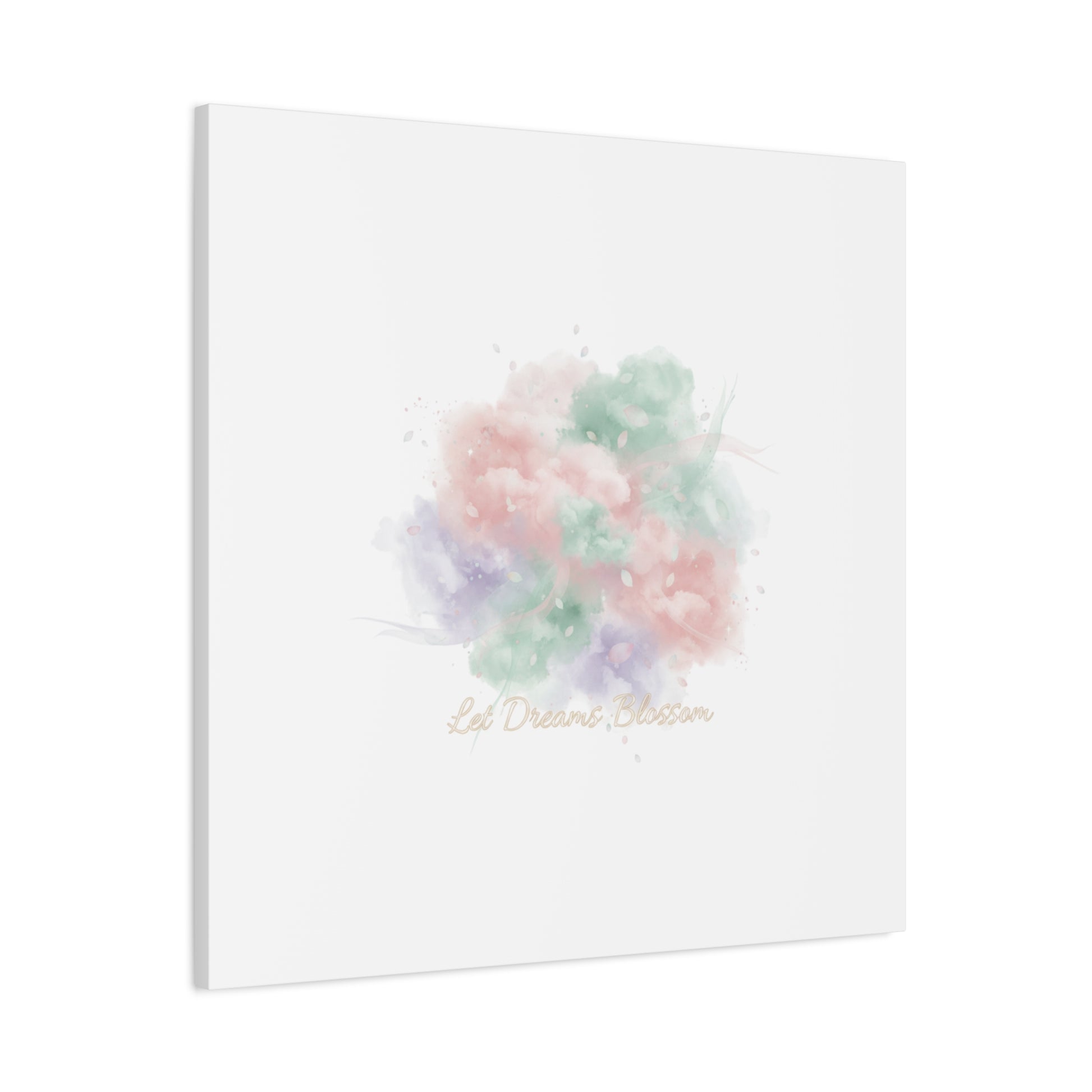 Dreamy pastel cloudscape on matte stretched canvas — airy blush, mint, and lavender washes form a soft, uplifting gradient with minimal, delicate lettering. The light, ethereal composition channels the “Dreamy Pastels in Winter” trend, bringing a springlike softness into cool-season decor for a quiet, mood-lifting accent on a neutral wall. Subtle texture from the matte canvas keeps the look calm and refined while the thin, cloudlike motifs read well in minimalist and bookish spaces.