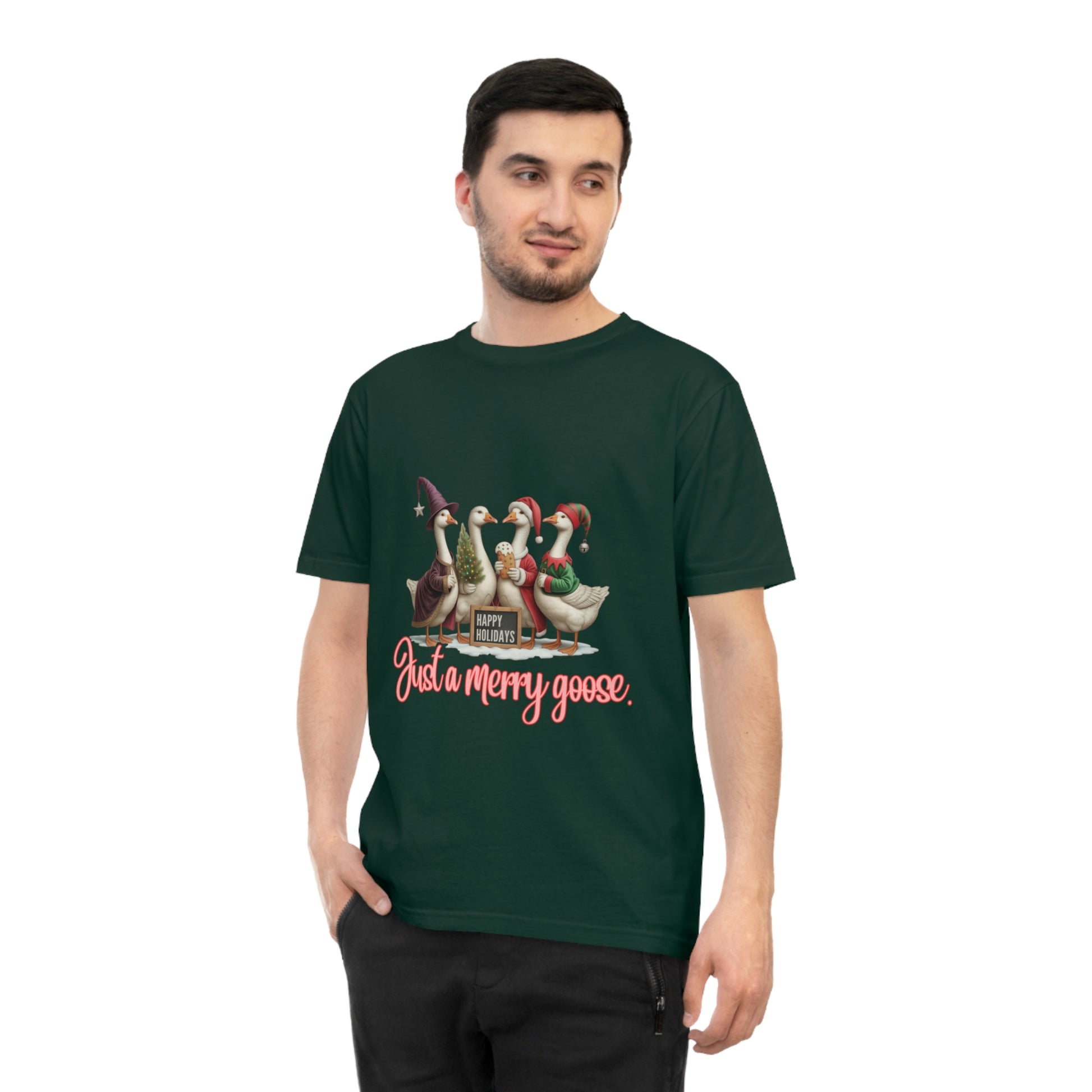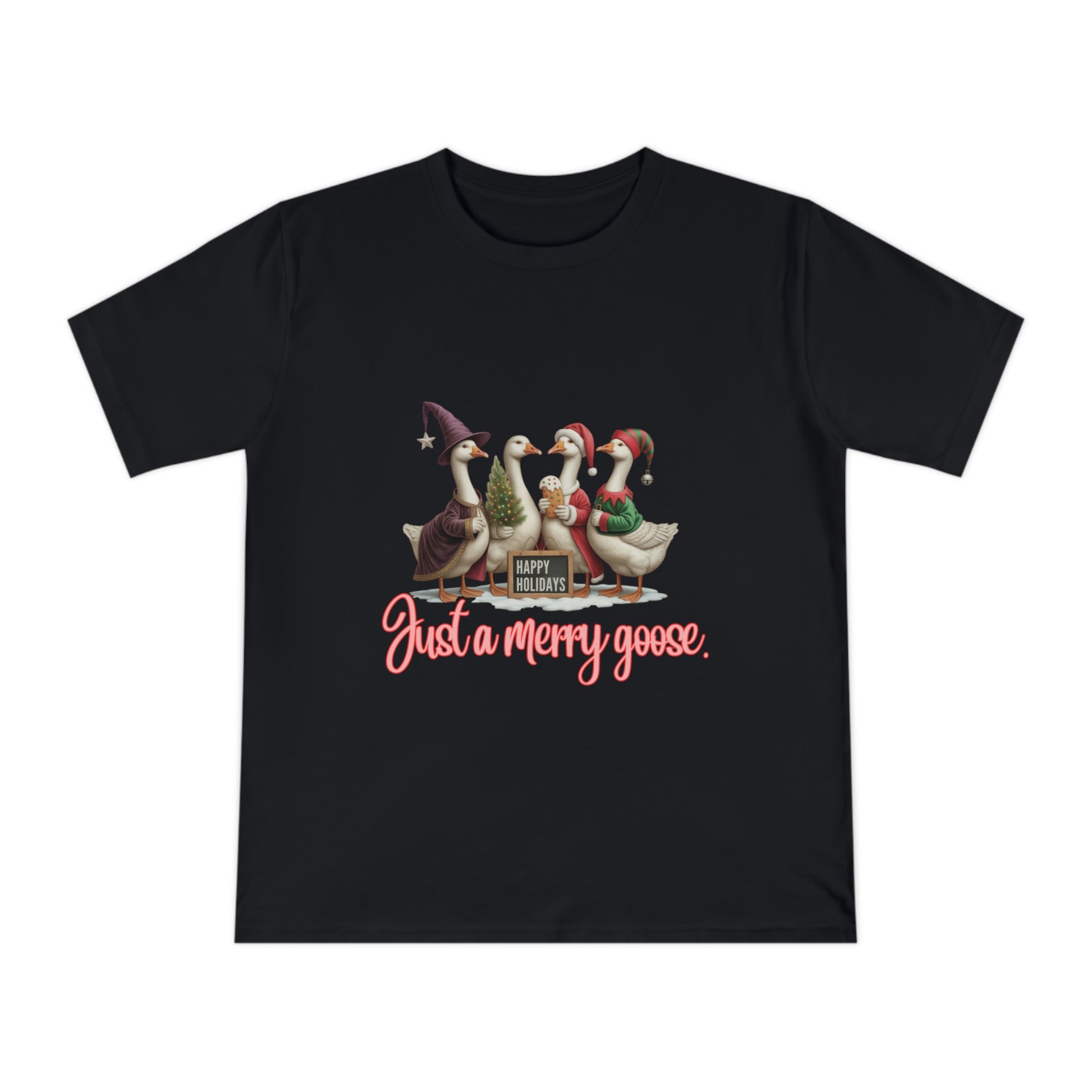 Organic "Just a Merry Goose Holiday" T-Shirt — Cute Christmas Geese Tee