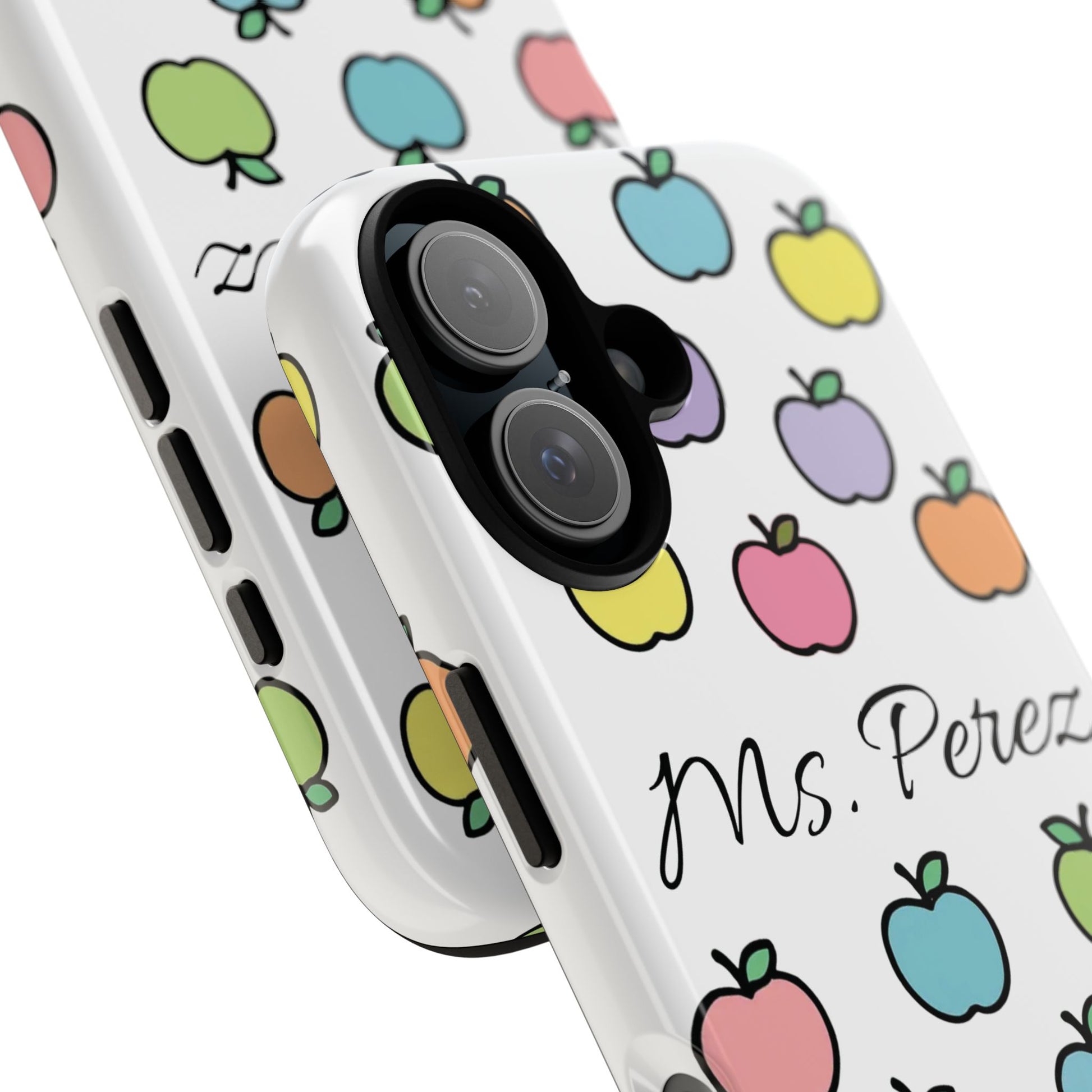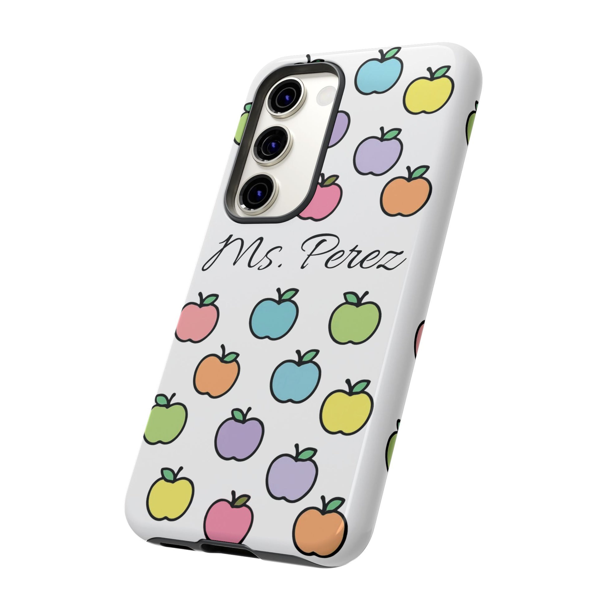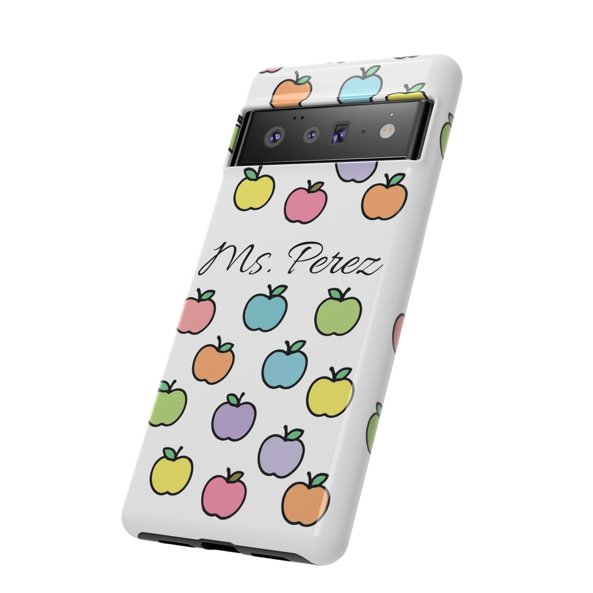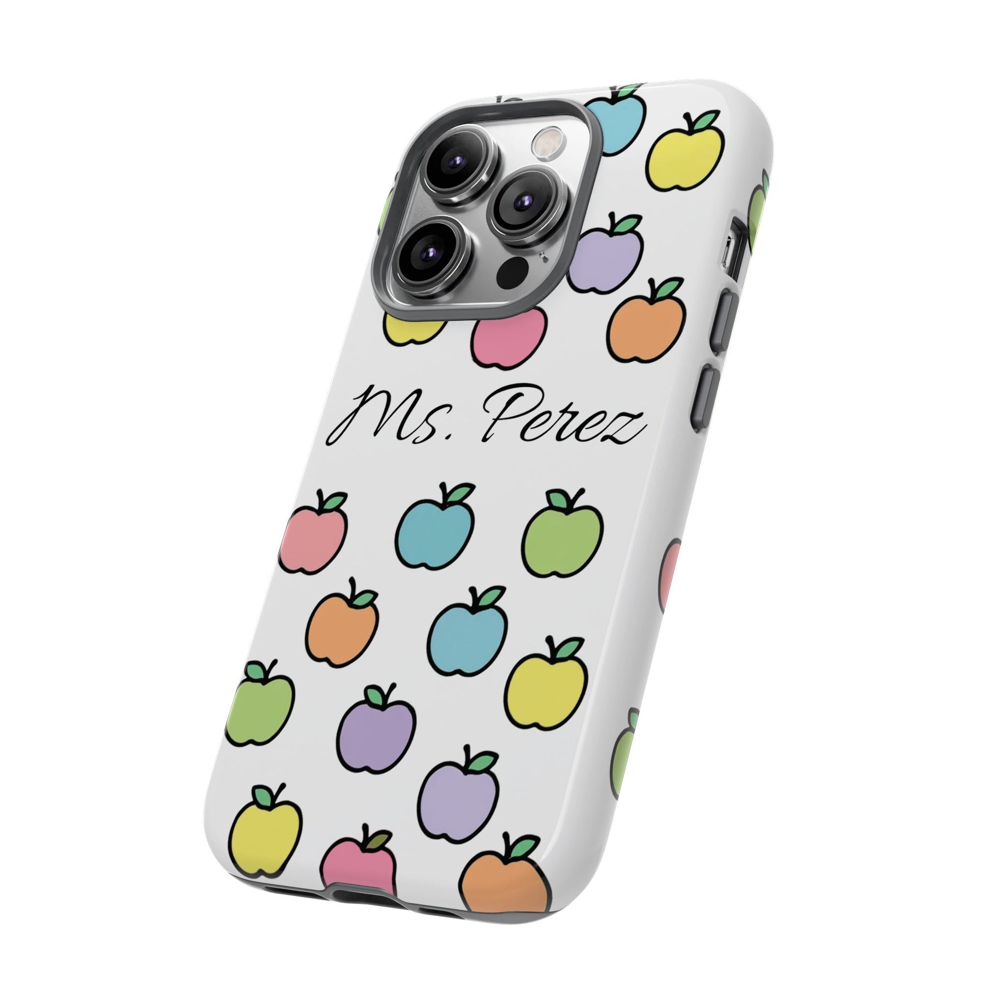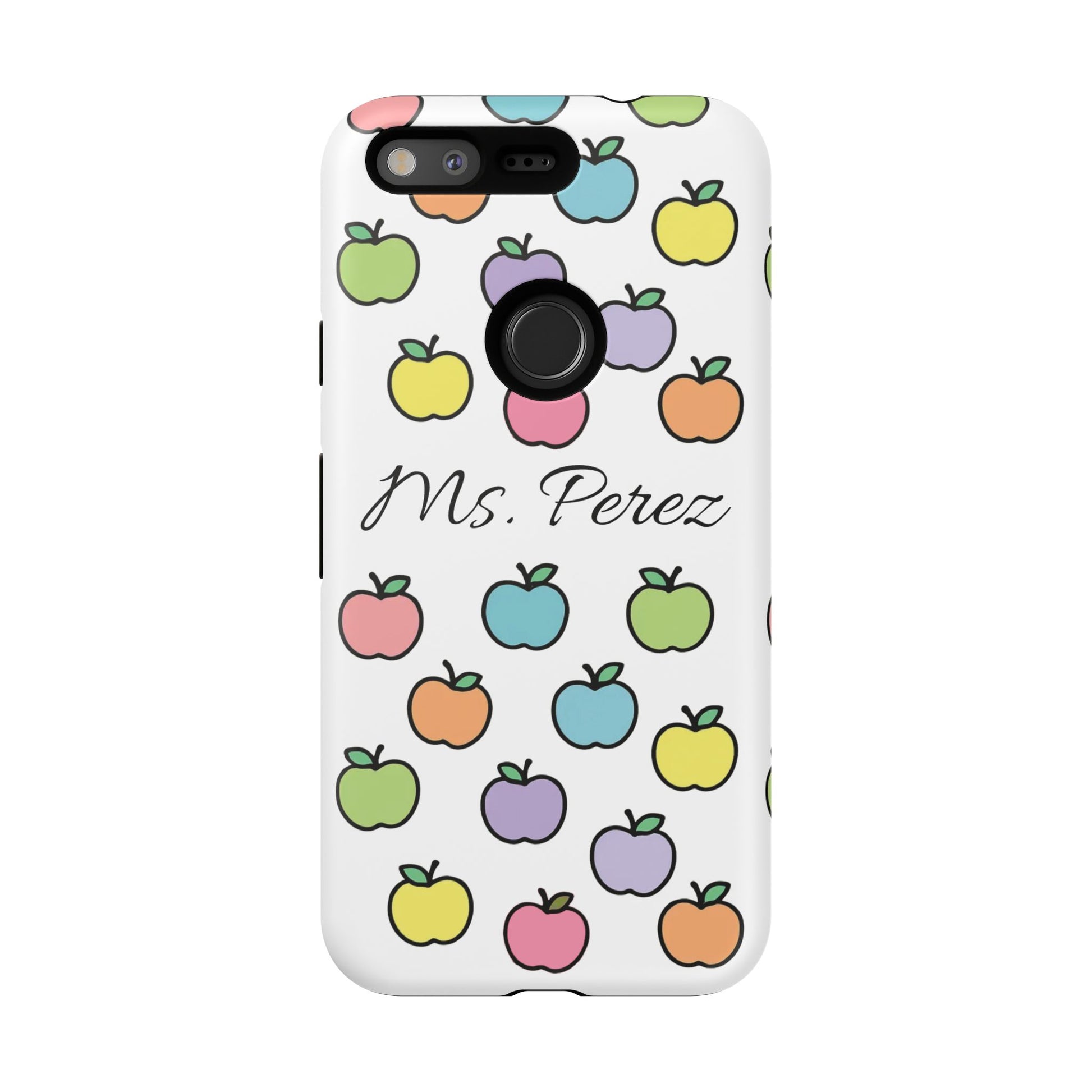 Add a personal touch to an everyday essential with this Personalized Teacher Apple Phone Case. Featuring a playful pattern of colorful apples and a custom name printed front and center, this case is both functional and full of teacher charm.