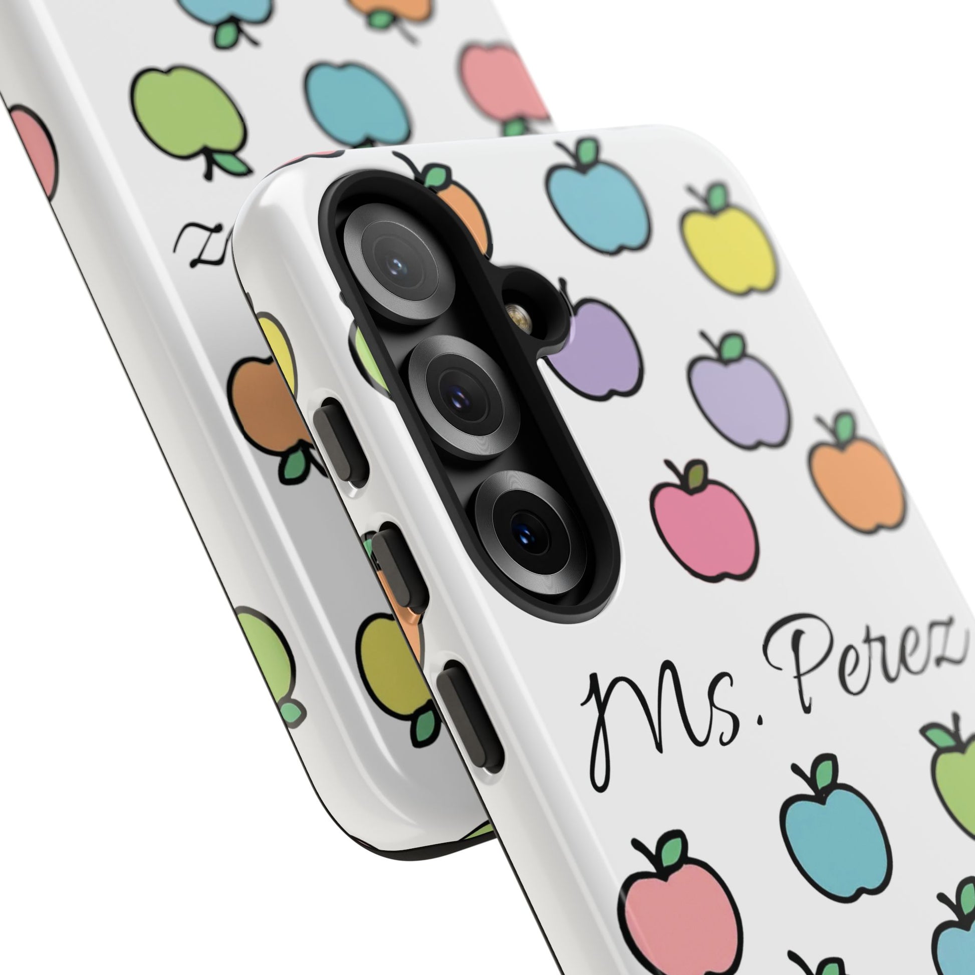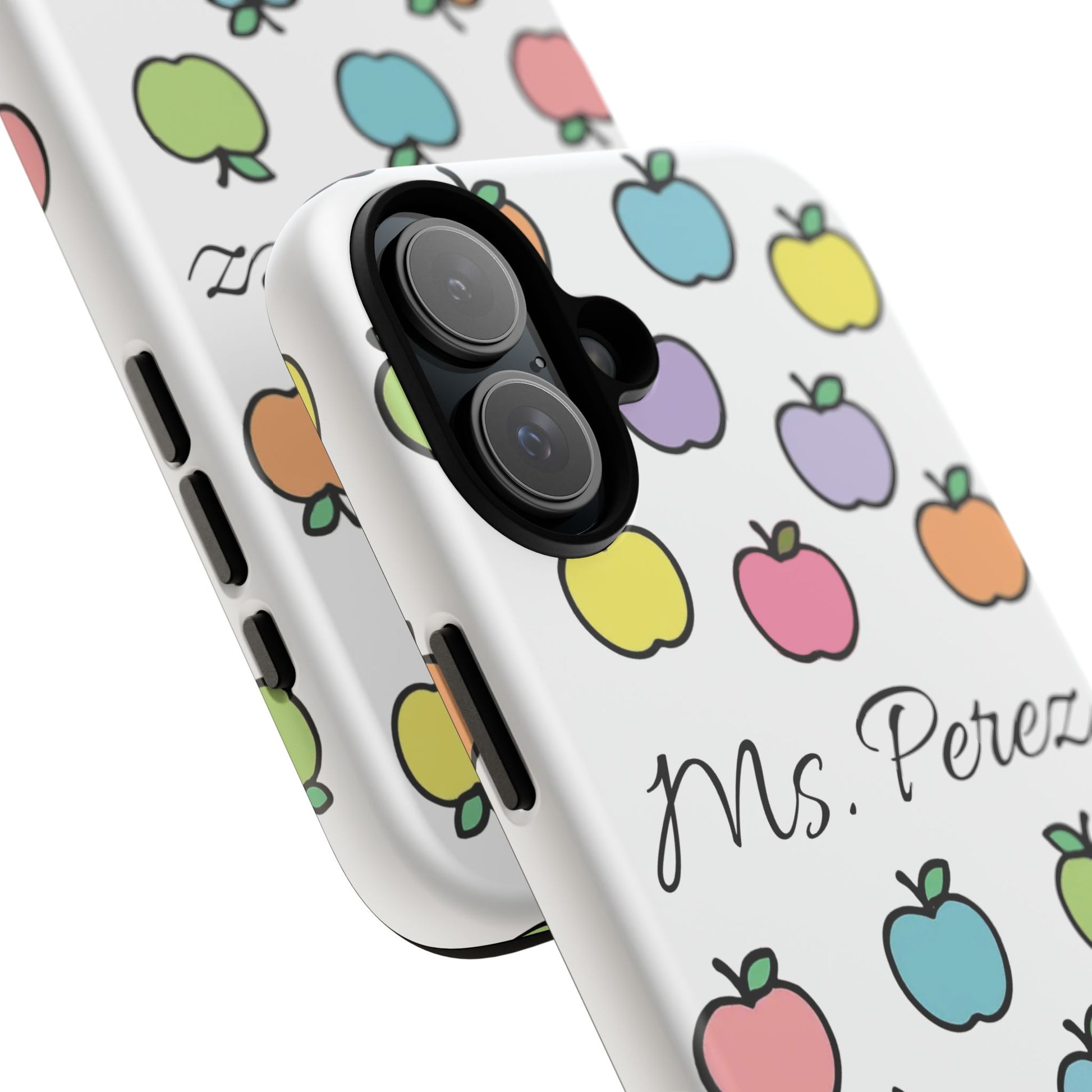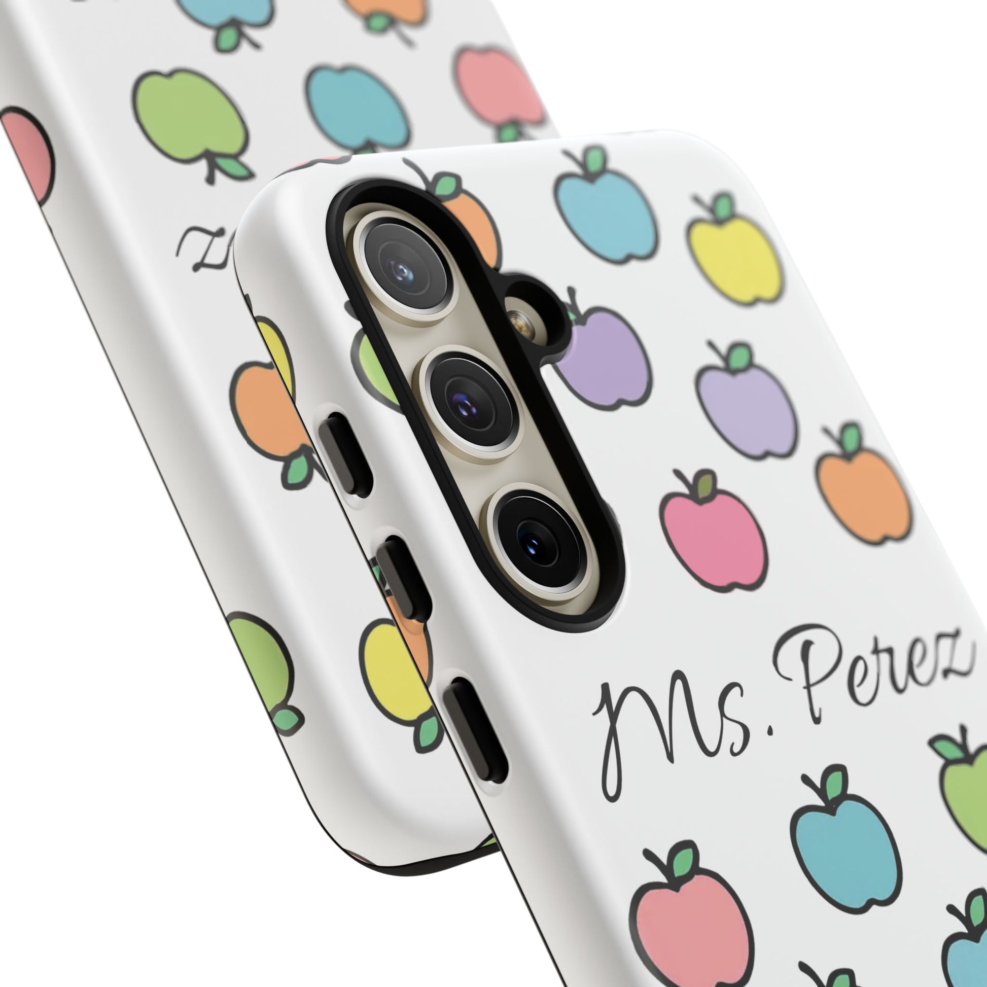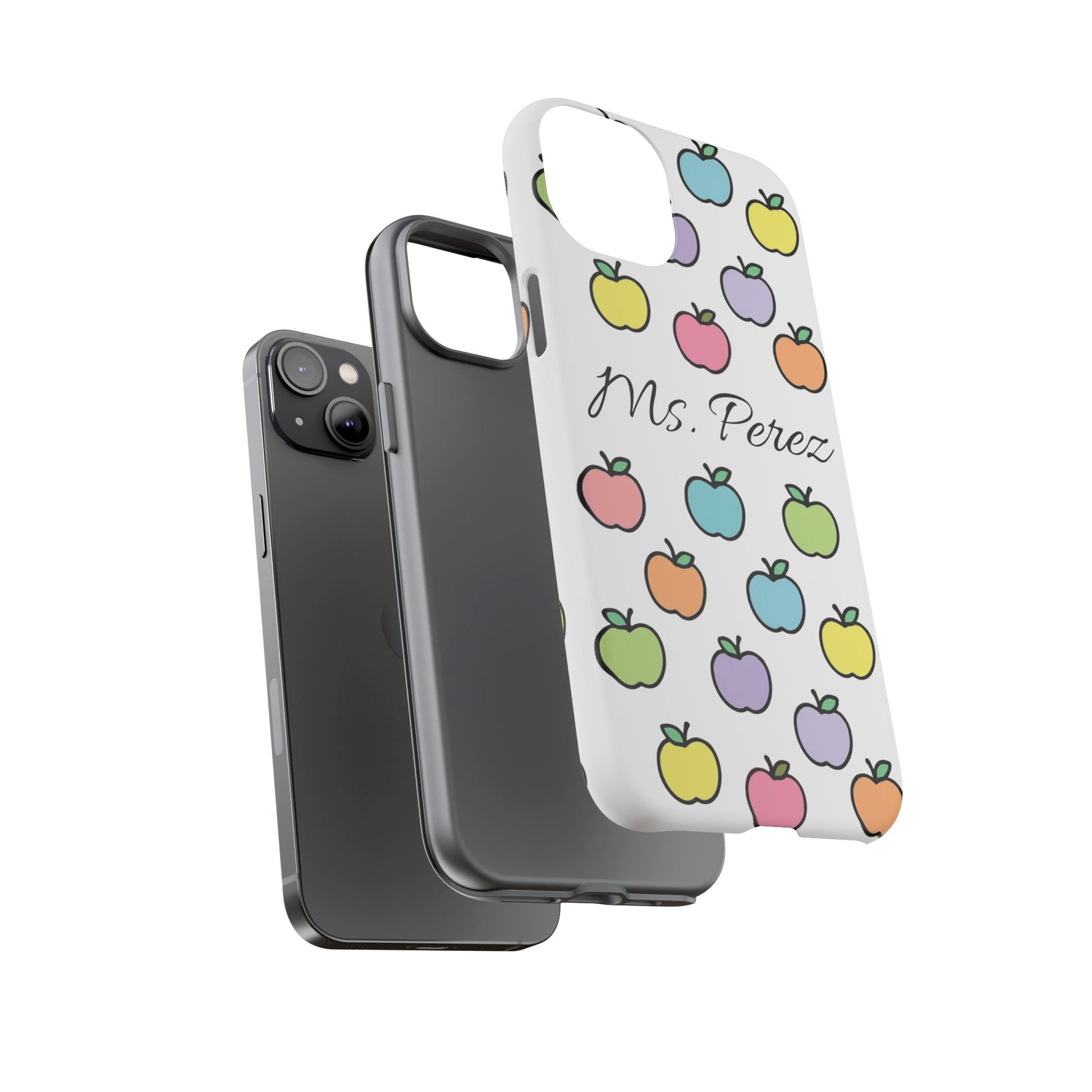 Add a personal touch to an everyday essential with this Personalized Teacher Apple Phone Case. Featuring a playful pattern of colorful apples and a custom name printed front and center, this case is both functional and full of teacher charm.