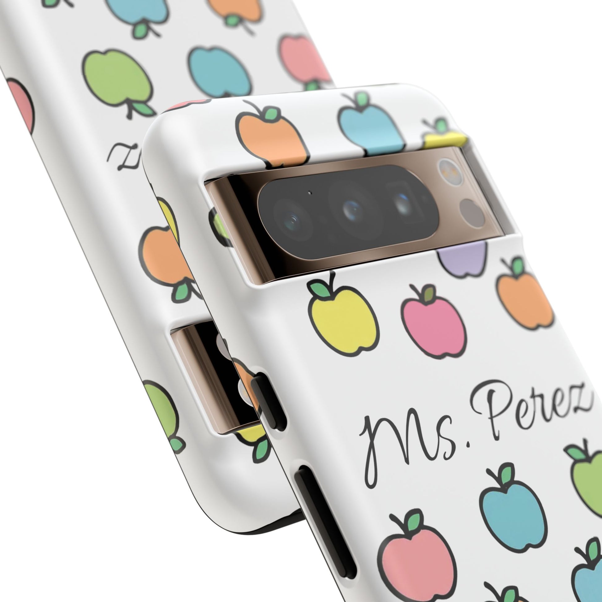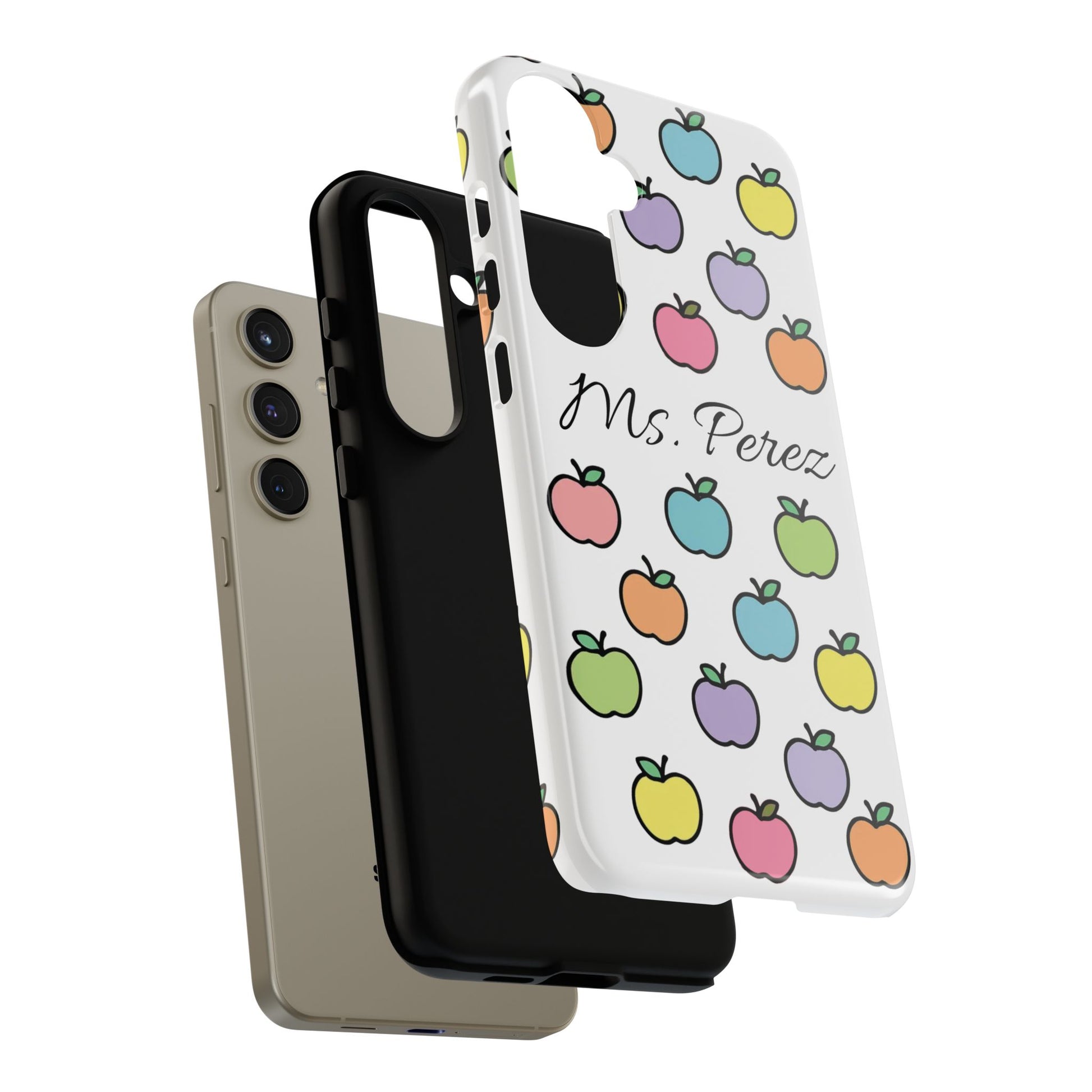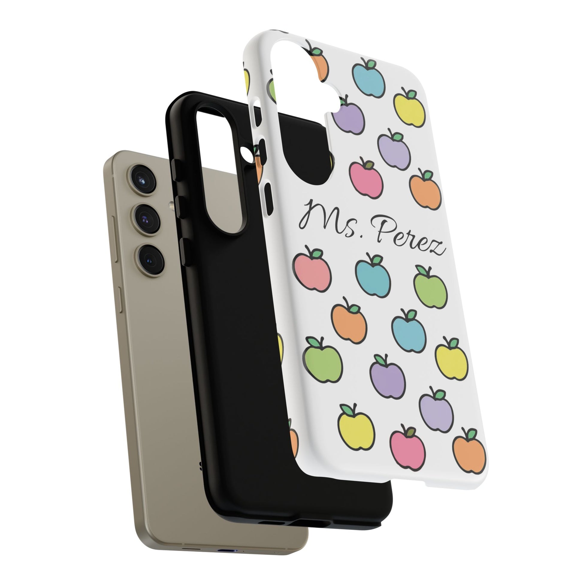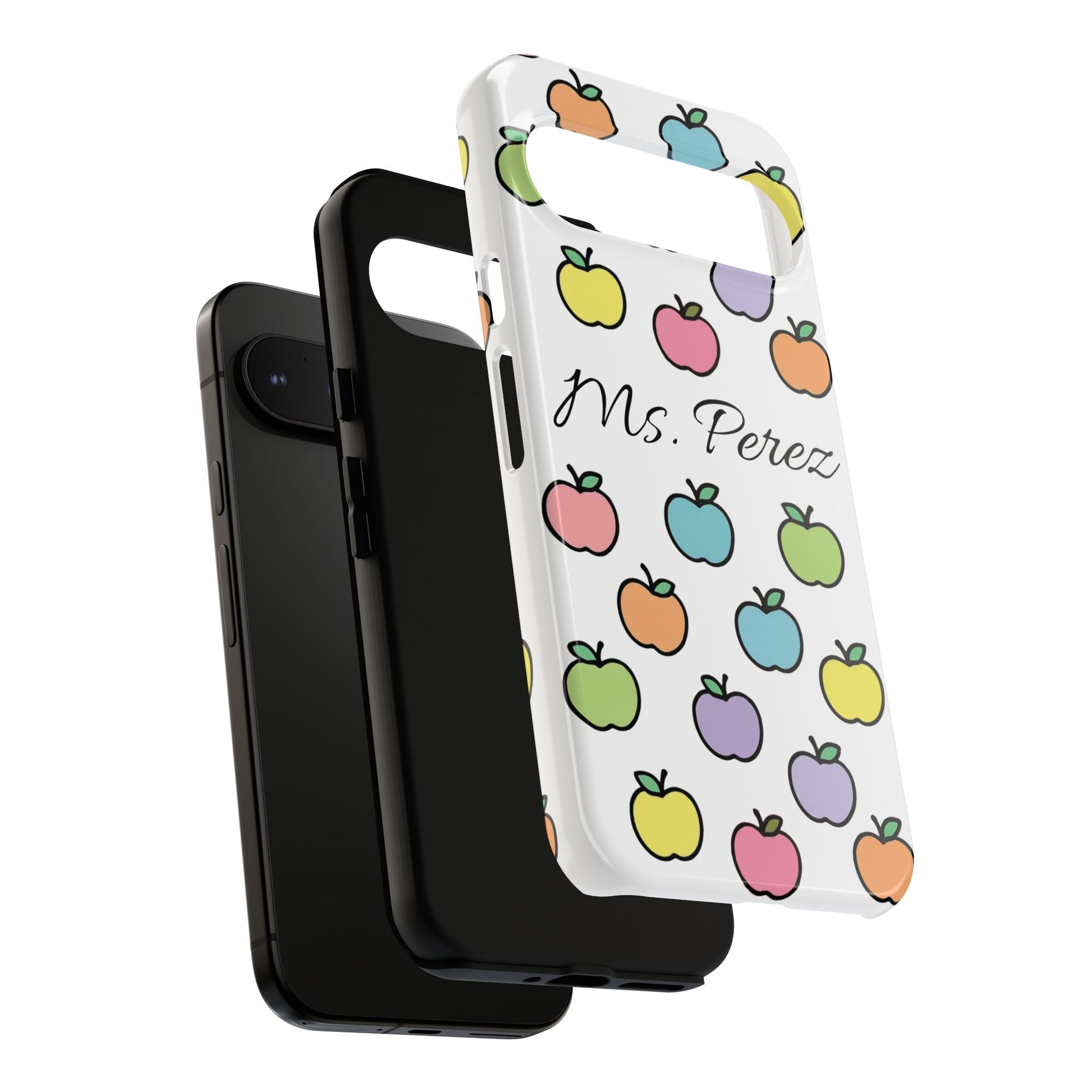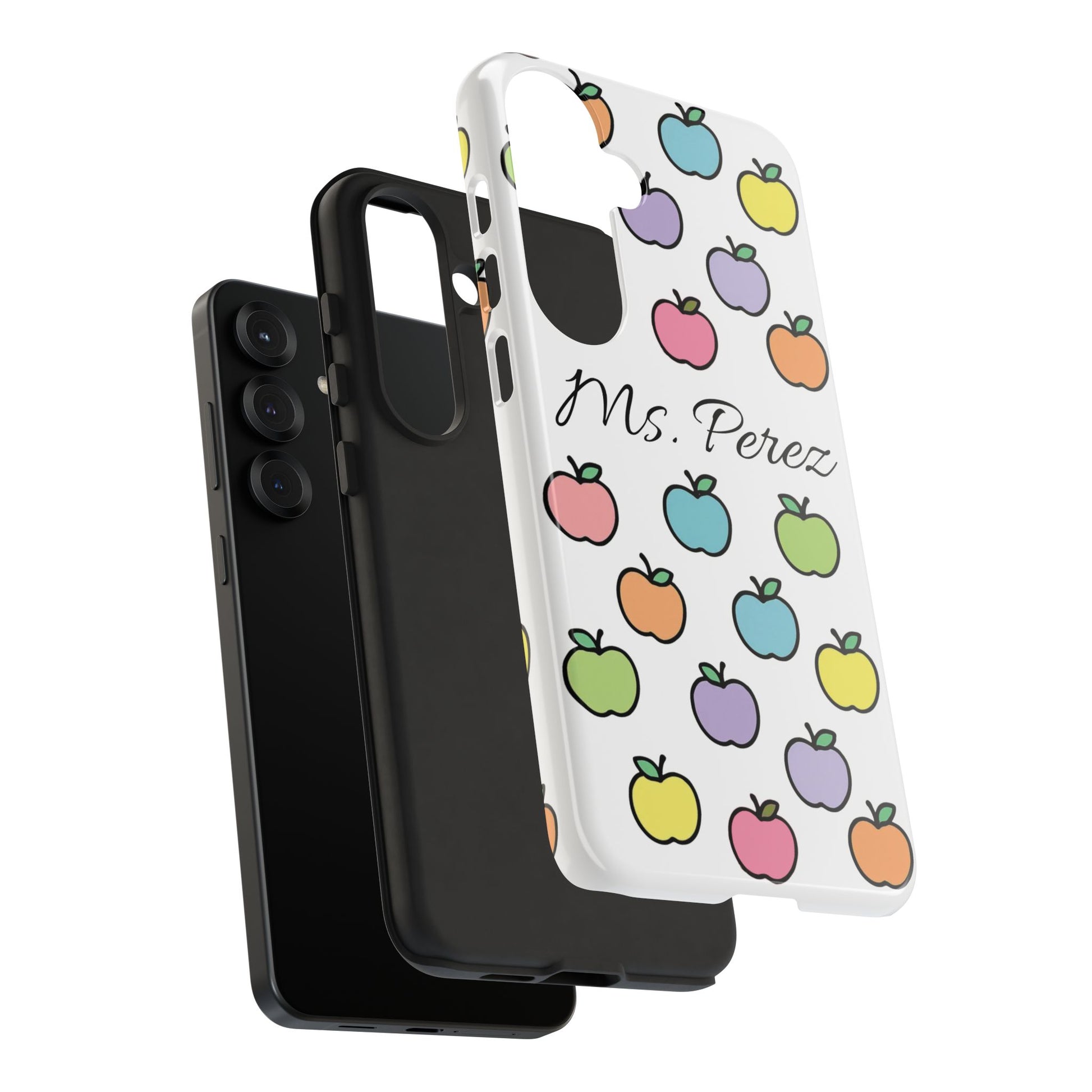 Add a personal touch to an everyday essential with this Personalized Teacher Apple Phone Case. Featuring a playful pattern of colorful apples and a custom name printed front and center, this case is both functional and full of teacher charm.