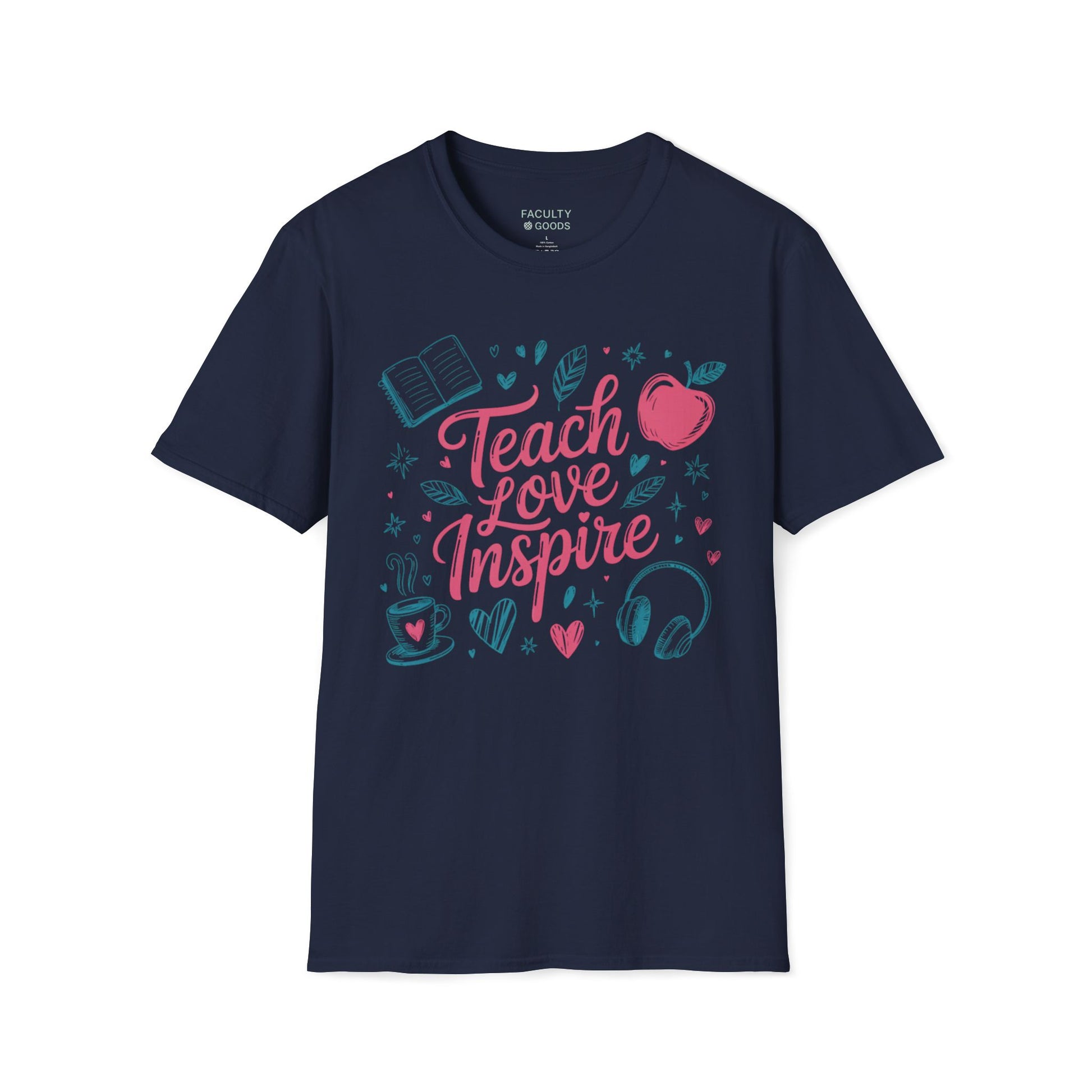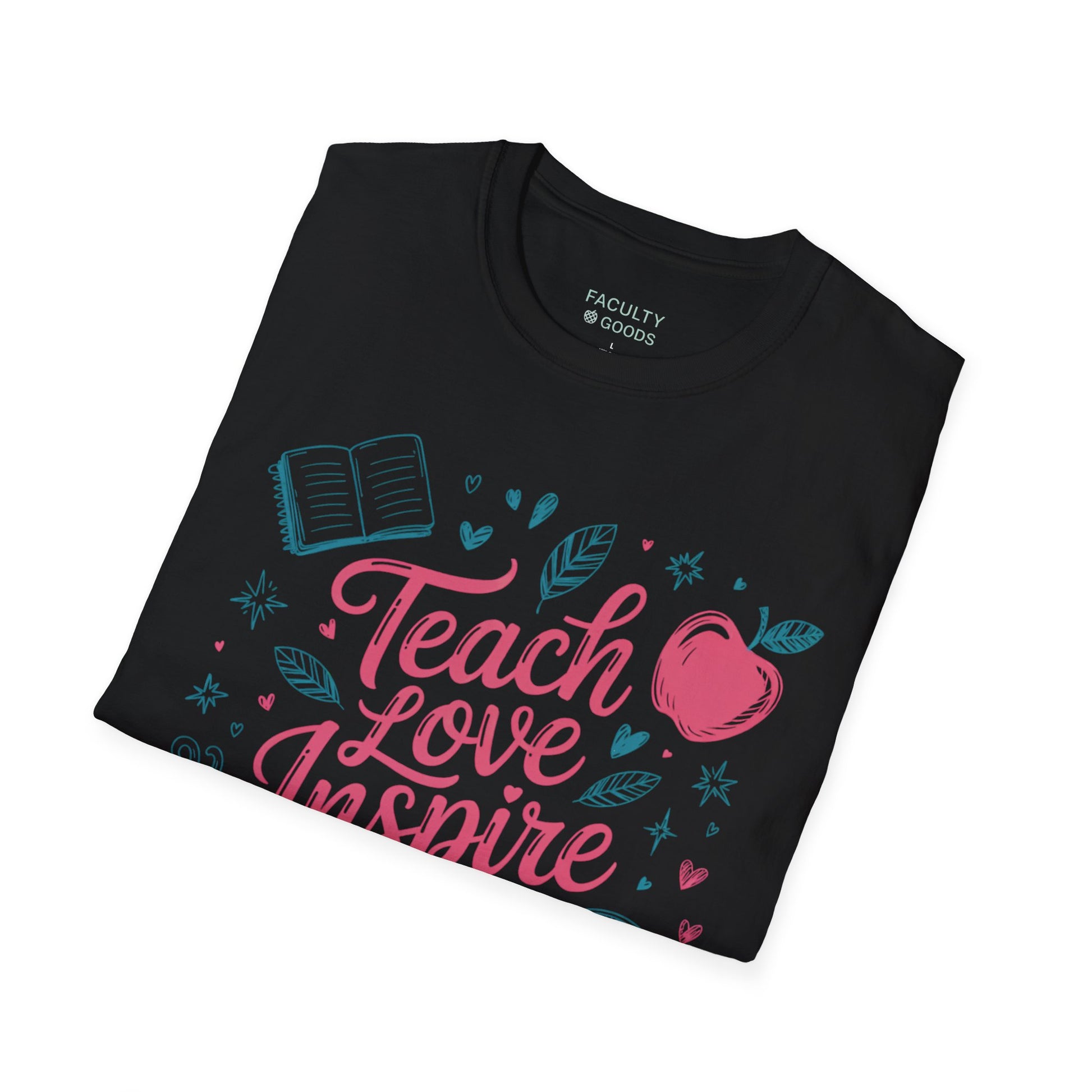 This Inspirational Teacher T-Shirt is a cozy graphic tee perfect as a gift for educators. The 'Teach Love Inspire' design adds a positive vibe to your wardrobe, making it ideal for back-to-school season. This unisex T-Shirt is made from durable and smooth fabric, perfect for printing, and is designed without side seams for a more attractive look. Suitable for adults, this T-Shirt features a classic fit with a crew neckline, suitable for any occasion.