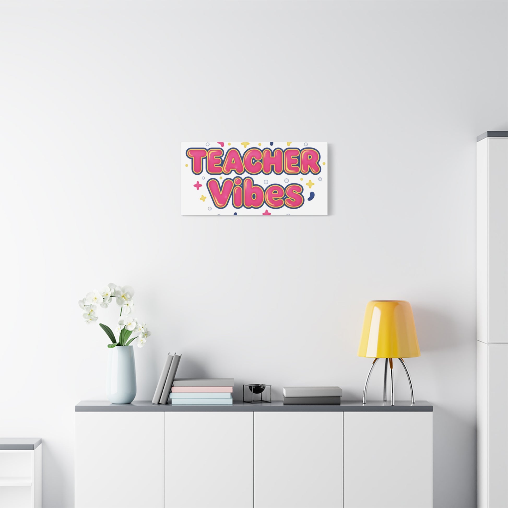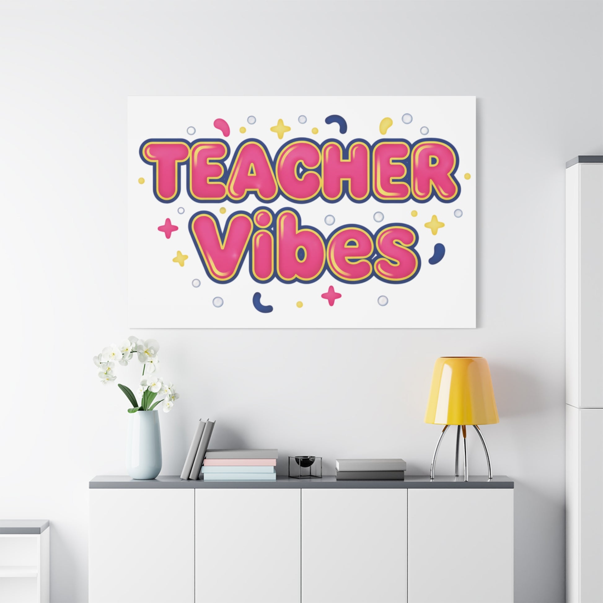 Playful, neon-gradient wall art that channels the Dopamine Decor trend with bubbly, rounded lettering and bright, squishy shapes. The design uses hot pink and contrasting accent colors in a glossy, candy-like style to create an upbeat focal point for a classroom corner, home office, or cozy reading nook. Its cheerful, tactile vibe aligns with sensory-comfort and Y2K-inspired color therapy looks favored by decor refreshers and self-care shoppers.